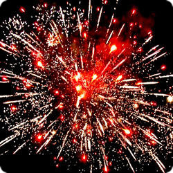 9-10. Выстреливает ЗАЛП: Кометы с трещащими хвостами разрываются в облако треска (трещащая хризантема) Множество серебряных ниспадающих нитей (парча) и красно- зелено- синяя сфера (пион) (до 60 сек., до 55 м.)