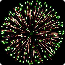 1.1 дюйма (около 28 мм.) 4 эффекта: Разноцветные кометы, серебряные трассы разрываются сферами из: 1-