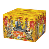 Крупнокалиберная батарея салютов, 49 зарядов калибром 2,75 дюйма (около 70 мм.) 7 эффектов: Разноцветные кометы, золотые трассы разрываются сферами из: