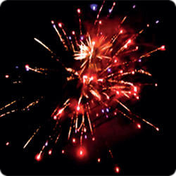 Модульная батарея фейерверков 19 зарядов калибром 1,2 дюйма (более 30 мм.) 4 эффекта: Красная комета разрывается голубыми пестиками с белым мерцанием. Желтая комета разрывается желтыми кокосами с золотым мерцанием. Красная комета разрывается серебряной хризантемой с красными жемчужинами. Парчовая комета разрывается парчовой короной с зеленым мерцанием. (до 43 сек., до 30 м)