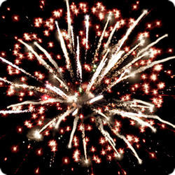 Модульная батарея салютов, 25 зарядов калибром 1.1 дюйма (около 28 мм.) 5 эффектов: Разноцветные кометы, золотые искристые трассы разрываются сферами из золотых форсов с: 1. красными огнями на концах и белых мерцающих огней; 2. зелёными огнями на концах и золотых мерцающих огней; 3. фиолетовыми огнями на концах и зелёных мерцающих огней; 4. серебряными огнями на концах и красных мерцающих огней; 5. красными огнями на концах и множества трещащих огней. (до 35 сек., до 45 м.)
