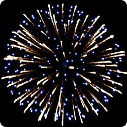 2. Серебряные кометы разрываются золотые трещащими хризантемами с белыми мерцающими искрами.